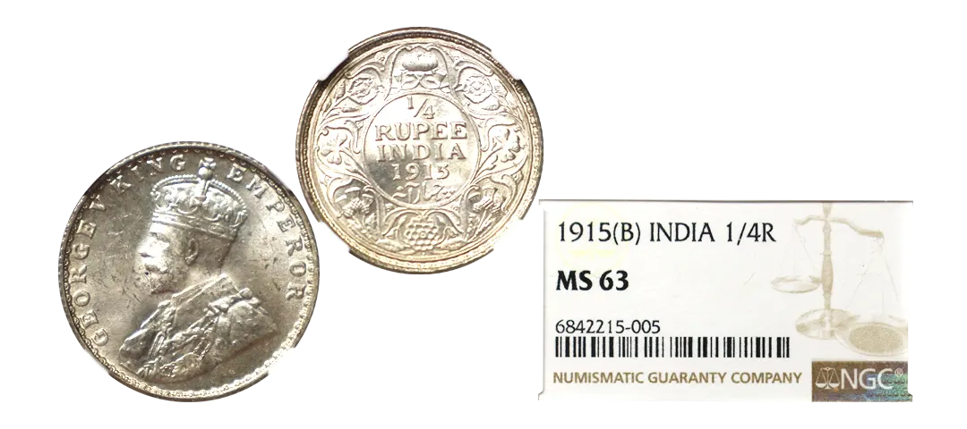 George V King Emperor, Silver Rupee, 1920, Calcutta Mint, NGC Graded as MS64, Rare in Grade.