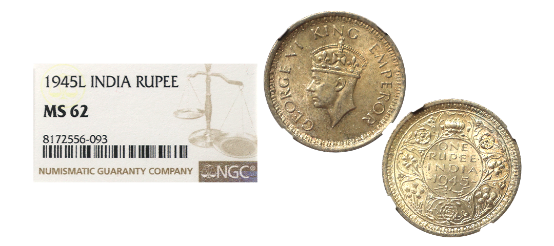 George VI, Silver Rupee, 1944, bombay mint, Excellent mint luster with beautiful strike and with almost flawless surface,Graded by NGC as MS63.