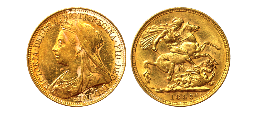 British Colony, Australia, Victoria Empress, Gold Sovereign, 7.98 gms, 1895 AD, Melbourne Mint, Obv. Older crowned and veiled of Queen Victoria to left legends ‘VICTORIA·DEI·GRA·BRITT·REGINA·FID·DEF · IND·IMP· T.B.’ around, Rev. St George slaying the dragon, with the date in exergue below 1896, KM #13, uncirculated, scarce.