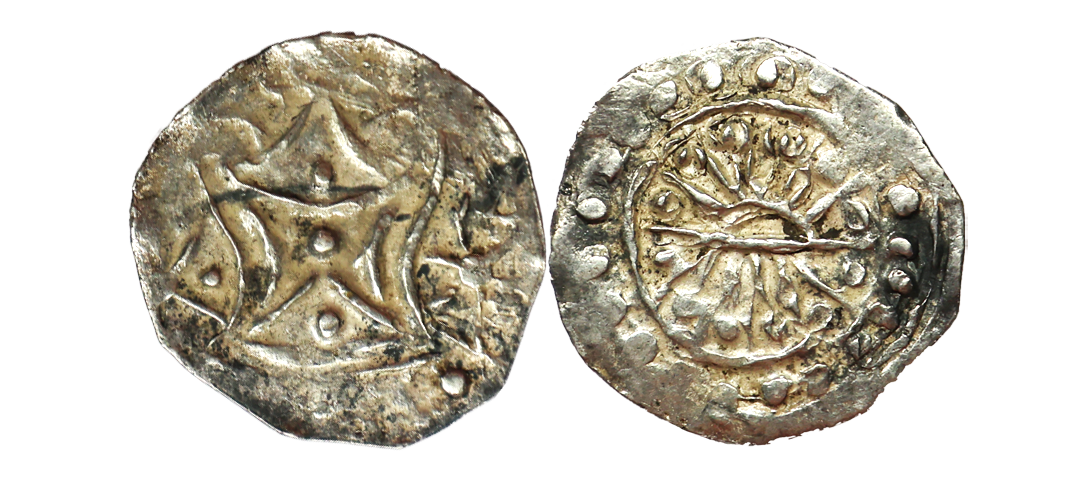 Burma, Pyu City State, Kingdom of Sri Ksetra (Srikshetra) (610-835 AD), Silver ¼ Unit, 2.20 gms, Obv. Sun rising over horizon (radiate third eye of Siva Trinetra) withhing dotted borders, Rev. temple of Srivatsa, moon and sun above, simplified symbols flanking, fine, very scarce.