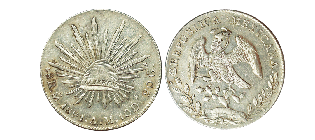 Mexico, Silver 8 Reales, 27.04g, 1891 AD, Obv: Radiant cap with rays between Liberty word, Rev: Eagle with snake. (KM # 377.10). Very Fine+