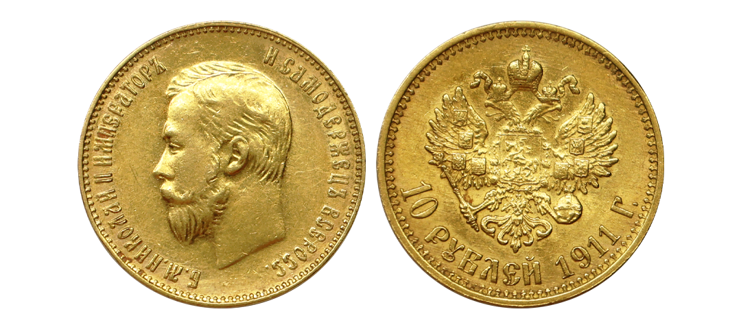 Russian Empire, Nicholas II (1894-1917 AD), Gold 10 Roubles, 8.58 gms, 1911, Saint Petersburg Mint, Obv. Portrait of the Emperor Nicholas II, legends ‘Б.М.НИКОЛАЙ II ИМПЕРАТОРЬ И САМОДЕРЖЕЦЪ ВСЕРОСС’ around, Rev. Two-headed eagle with a crown above, legends ‘10 РУБЛЕЙ 1910 Г’, KM #Y64, extremely fine, scarce.