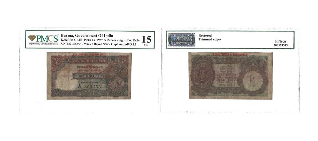 George V, Rupees 10, 2nd issue, ND (1917-30), signed J. B. Taylor, Serial Number: K32 367917, (J&R 3.7.2). Graded by PMG 50 About Uncirculated.