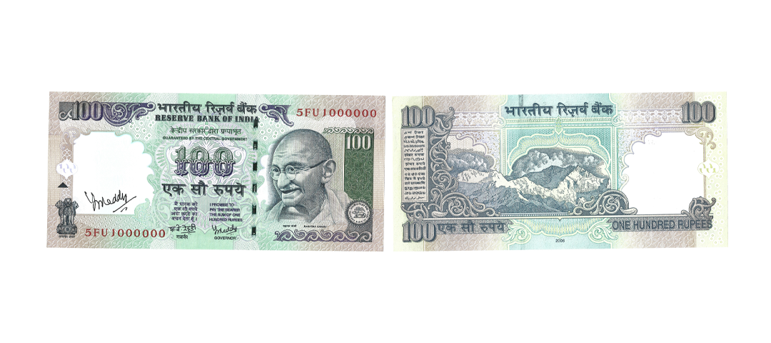 Republic India, 100 Rupee, Fancy Number, Serial No.: 9CR 555555, Signed by Bimal Jalan, Inset B, Hand Autograph by Bimal Jalan (Finance Secretary), Good, Scarce.