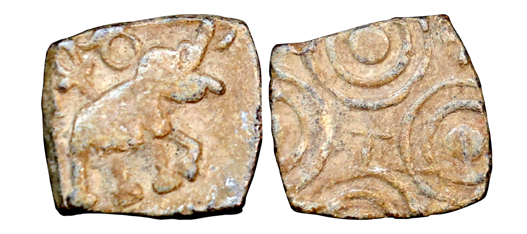 Satavahanas, (c. 1st Century BC), Lead Unit, 1.19 gms, Obv. elephant to right, Rev. ujjaini symbol, very fine+, very rare.