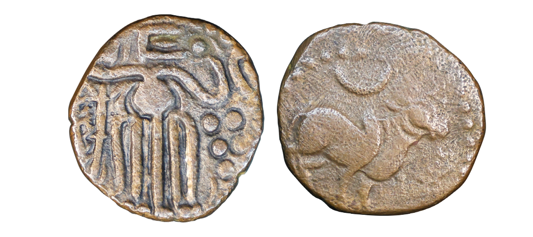 Vijayanagara Empire, Sangama Dynasty, Harihararaya I, Copper Kasu, 3.34 gms, Mitch.KA # 593, very fine, very scarce.