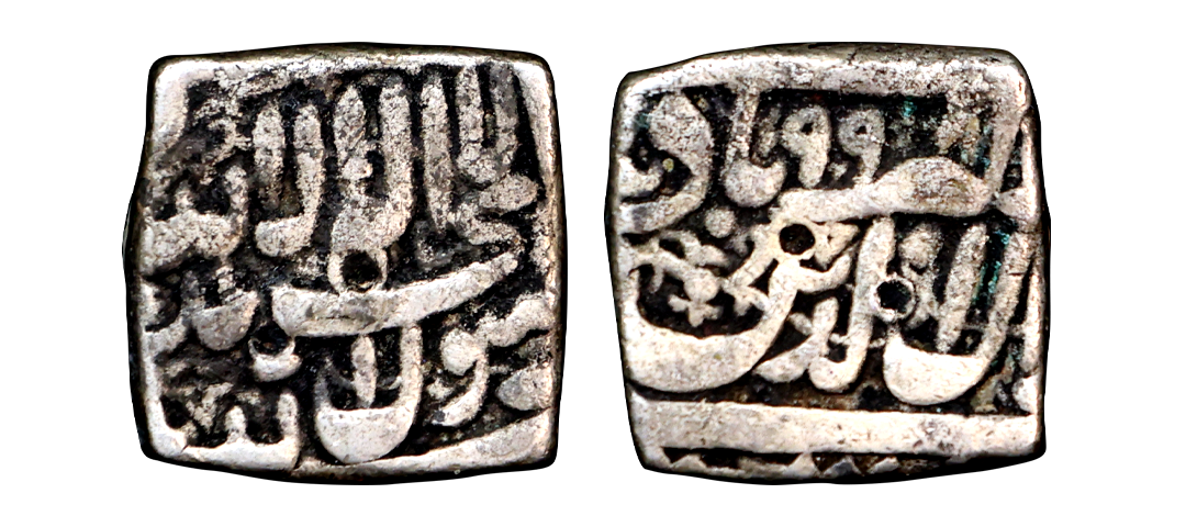 Akbar (AH 963-1014, 1556-1605 AD), Silver Square Rupee, 11.23 gms, Ahmedabad Mint(by type), AH 991, KM # 82.1, fine, scarce.