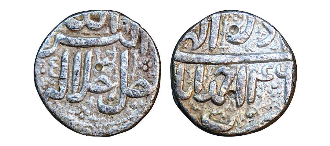 Akbar (AH 963-1014, 1556-1605 AD), Silver Rupee,11.37gms, Ahmadabad Mint, Ilahi Month Amardad, RY 46, KM #93.2, very fine, scarce.