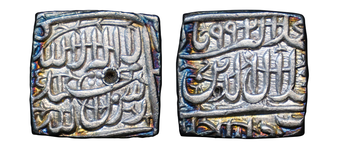 Akbar (AH 963-1014, 1556-1605 AD), Silver Rupee,11.37gms, Ahmadabad Mint, Ilahi Month Amardad, RY 46, KM #93.2, very fine, scarce.