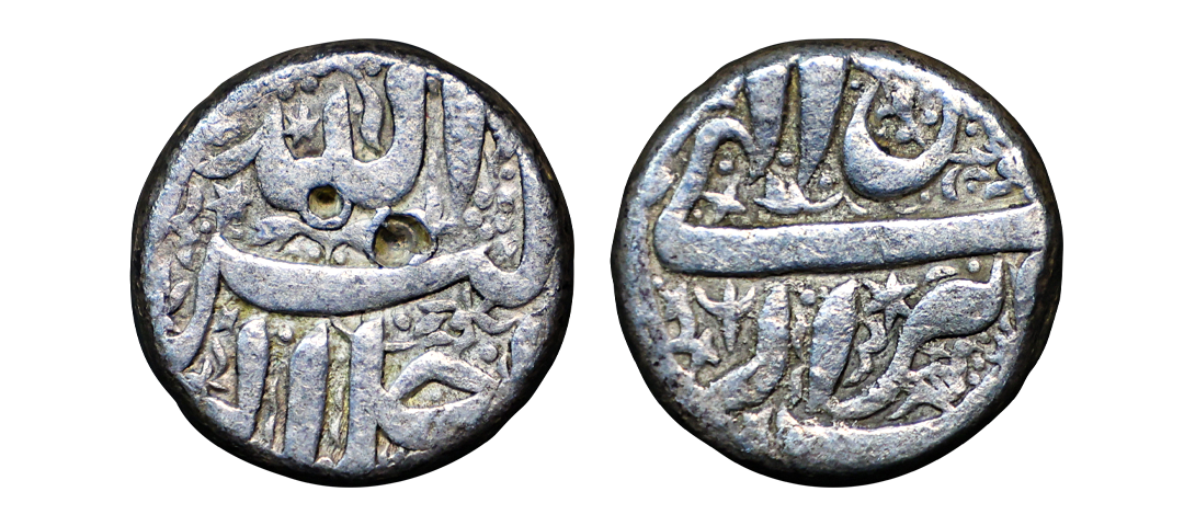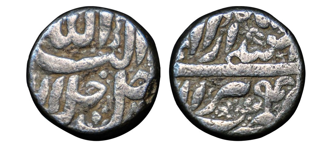 Akbar,(1556-1605 AD) Silver Rupee, 11.38g, Berar Mint, Ilahi type, Month Azar, Year 4X (KM 93.6). Extremely Fine, Rare.