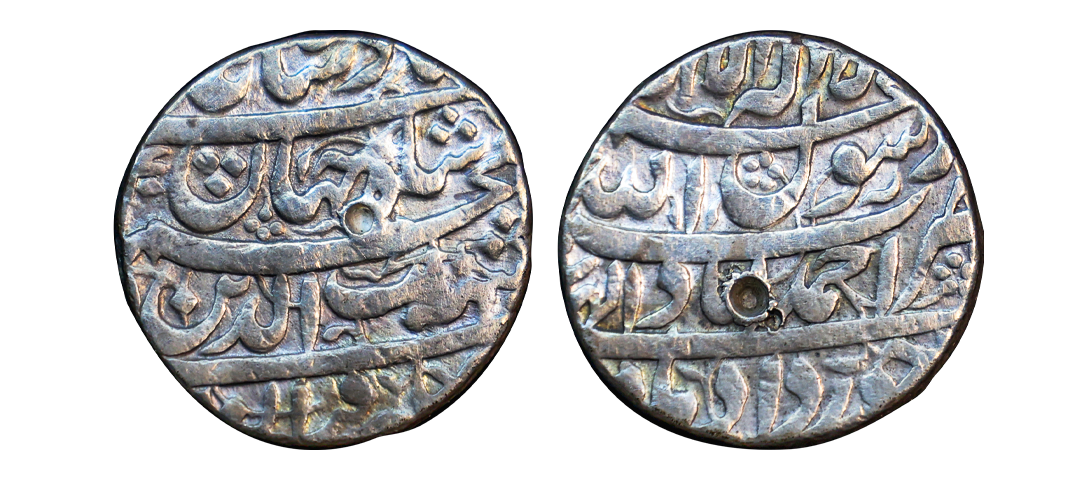 Shah Jahan (1628-1658 AD), silver rupee, Dar ul-Khilafat Agra mint, AH (10)37/RY Ahd, KM 222.1, 11.09g. Obv: Emperor's full name and title in four lines. Rev: Kalima, date and mint name in three lines. Toned, About Extremely fine, Rare.
