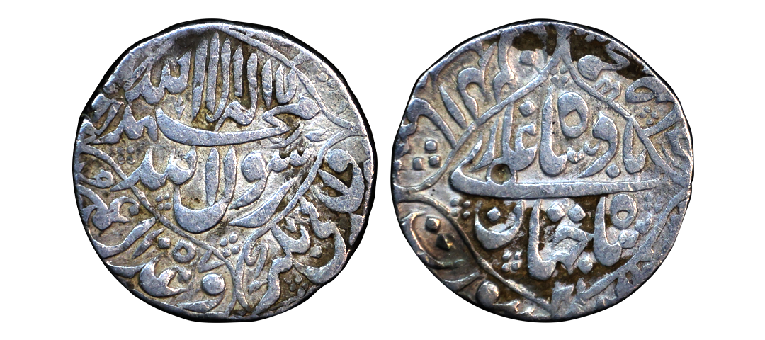 Shah Jahan (AH 1037-1068, 1628-1658 AD), Silver Rupee, 11.35 gms, Surat Mint, KM # 235.23, very fine, scarce.