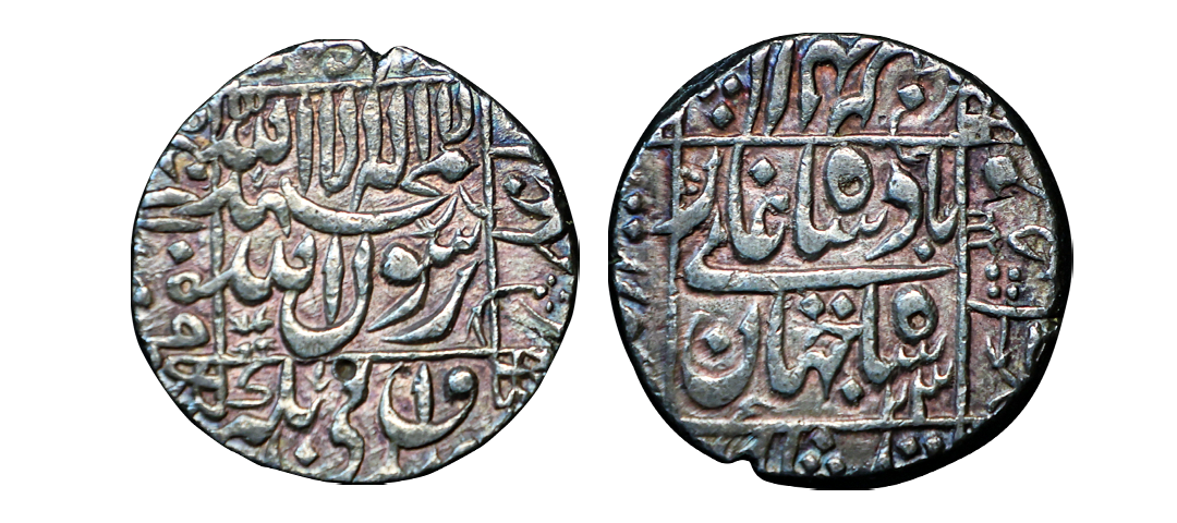 Shah Jahan (AH 1037-1068, 1628-1658 AD), Silver Rupee, 11.39 gms, Surat Mint, KM # 235.23, very fine, scarce.