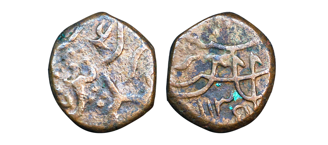 Aurangzeb (AH 1068-1118, 1658-1707 AD), Copper Paisa, Machlipatan Mint, AH 1113, RY 47, very fine, very scarce.