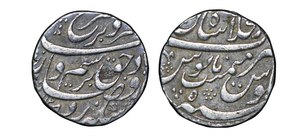 Farrukhsiyar (1713-1719 AD), silver rupee, Dar ul-Khilafat Shahjahanabad mint at top, AH (1)125/RY Ahd, KM 377.55,11.2g. Good very fine, Very scarce.