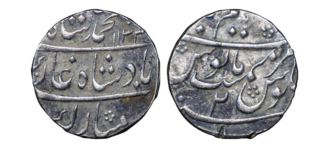 Muhammad Shah (1719 - 1748 AD), silver rupee, 11.53gms, Allahabad mint, AH 1144/RY14, KM 436.6. Extremely fine.