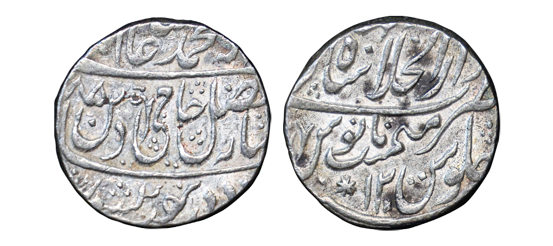 Shah Alam II (1759-1806 AD), silver rupee,11.28gms, Dar ul-Khilafat Shahjahanabad mint, 'Hami-e-din' couplet, AH (11)85/RY 12, (KM 709.1), . Very Fine, Very scarce.