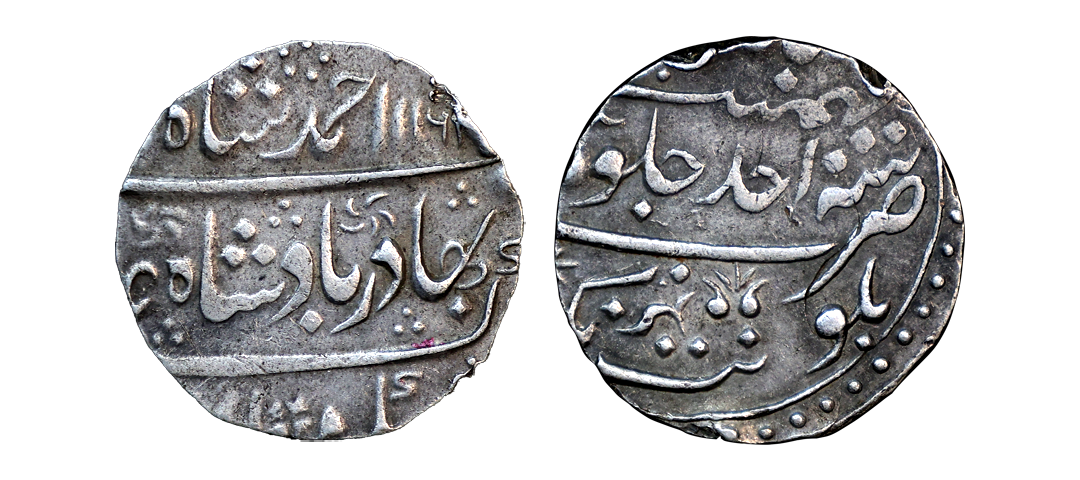 Jaintiapur, Jatra Narayan (SE 1704-1707/1782-1785 AD) Silver Tanka/Rupee, Saka Era 1704, Obv: legends "sri sri si/va charana ka/mala madhu ka/rasya" and a six-pointed star, two beads in the lower field,within a double circled border with beads in between, Rev: legends, "sri sri ja/yantipura pu/randarasya" & SE 1704, flowers at the left and right of the top line, with petals of elongated dots, within a double circled border with beads in between, Graded by NGC as VF 35, KM # 192/RB # M1, very rare.