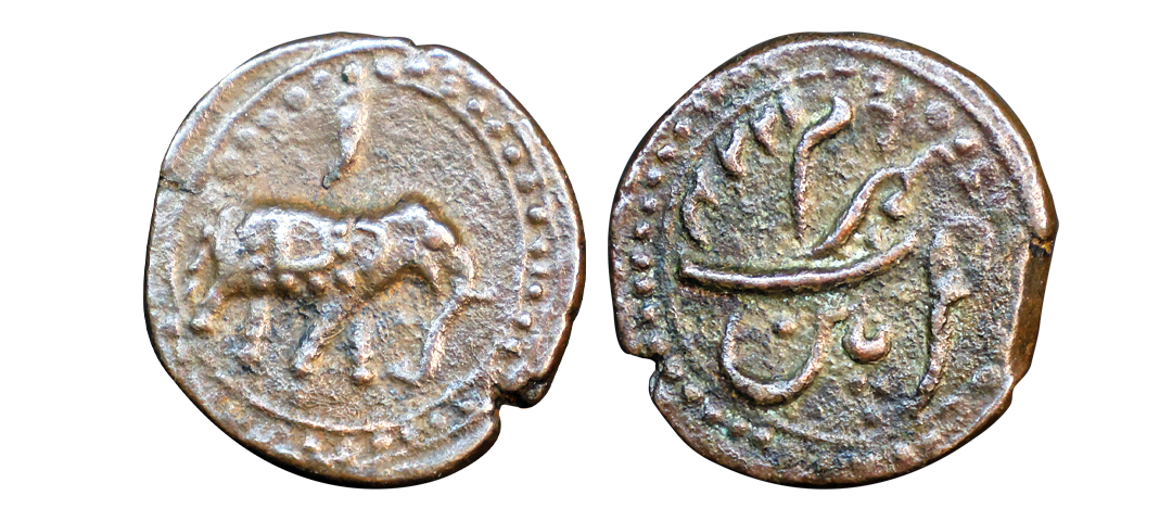 Mysore, Tipu Sultan (AM 1215-1227, 1787-1799 AD), Copper Paisa, 10.66 gms, Nagar Mint, AM 1225, very fine, scarce.