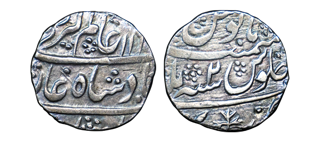Nawabs of Bengal, Azimabad (Patna) Mint, Silver Rupee, in the name of Alamgir II, trident as a mint mark, AH 1168/2 (KM460.5 listed under Mughals). Very Fine+, Rare.