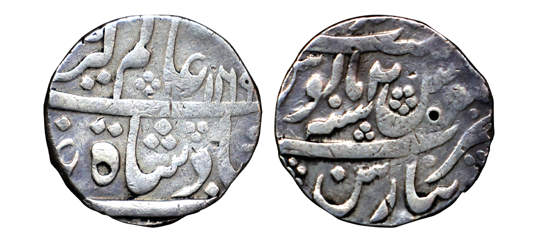 Alwar, Mangal Singh (1874-1892 AD), silver rupee, 1891, KM 46, 11.52g. Obv: Portrait bust of Victoria Empress. Rev: Persian legend Maharaja Sri Sawai Mangal Singh Bahadur and date. Extremely fine+, Very scarce.