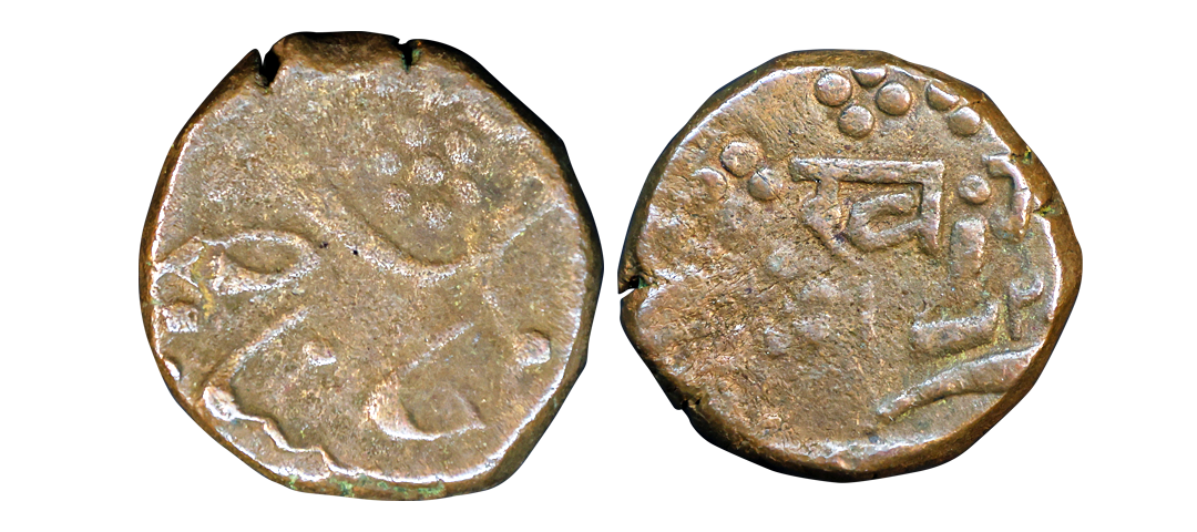 Baroda State, Khande Rao (AH 1273-1287, 1856-1870 AD), Copper 2 Paisa, 15.31 gms, Amreli Mint, fine, scarce.