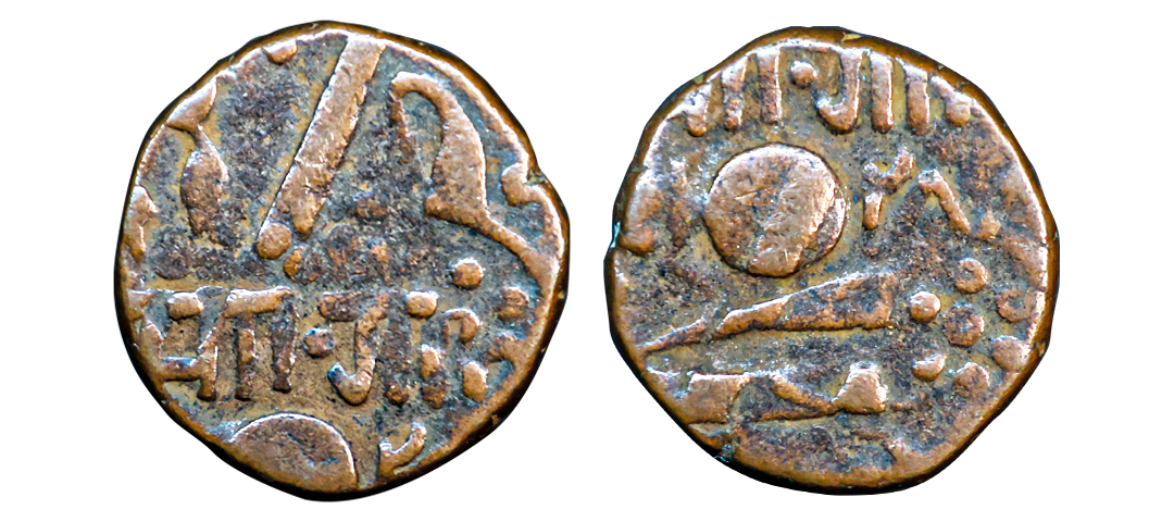 Baroda State, Khande Rao (AH 1273-1287, 1856-1870 AD), Copper Paisa, 7.60 gms, Amreli Mint, Error, double struck, very fine, scarce.