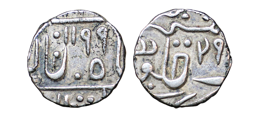 Partabgarh State, Sawant Singh (AH 1189-1241, 1775-1825 AD), INO Shah Alam II (AH 1174-1221, 1759-1806 AD), Silver ½ Rupee & ¼ Rupee, 5.29 gms, 2.66 gms, Deogarh Mint, AH (11)99, RY 29, sword on rev, AH 1199, RY 29, KM # 12 & 11, very fine, very scarce.