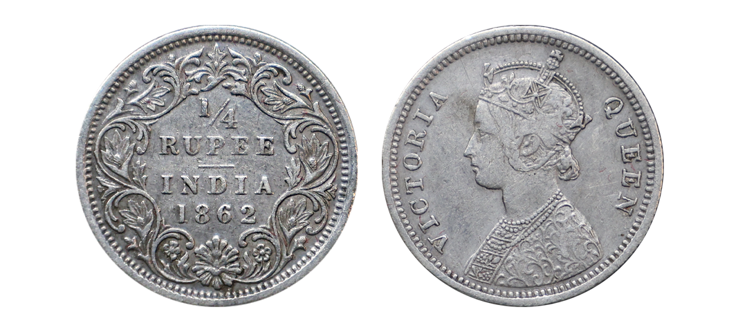 Victoria Queen, continuous legend, silver ¼ rupee, 1840, Bombay mint, English head with modified features, 20 berries, PR 102, GK 133. Very Fine fine, Very scarce.