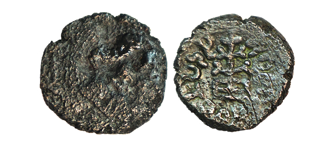 Ancient, Agroha Janapada, (2nd-1st Century BC), Copper Unit, 3.27 gms, Obv. Lion to right, Traces of Brahmi legend, Rev. Probably an Agroha coin reissued on older coin planchet railed tree, Pieper # 987, fine, rare.