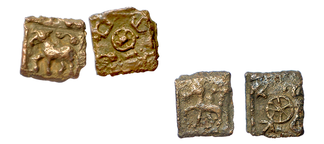 Ancient, North India, Generally Assigned to Sunga Dynasty (1st Century BC), Uninscribed, Cast Copper Unit, 1.90 gms, Obv. Elephant to left, Rev. Three arch hill (Chaitya) surmounted by a crescent, Pieper # 323, about very fine, scarce.
