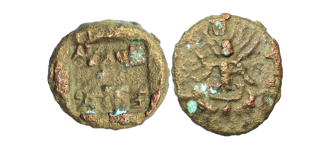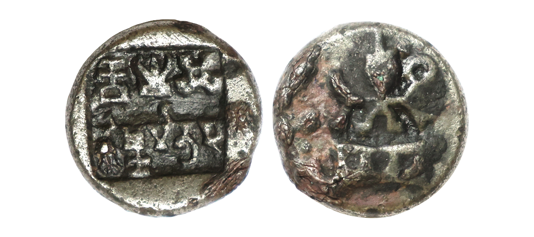 Ancient, Panchala, Jayamitra (1st Century BC), Copper Unit, 4.21 gms, Obv. Standing deity on a pedestal, Rayed arch above, Rev. Three Panchala symbols on top, Brahmi legend ‘Jayamitrasa’ below, Pieper # 1337, very fine, rare in this grade with clear legend.