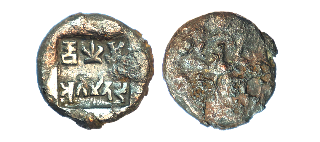 Ancient, Panchala, Chandramitra (1st Century BC), Copper Unit, 3.07 gms, Obv. A wavy line (flag) and a trishul on a platform, Rev. Panchala symbols on top, Brahmi legend ‘ChaNdraMiTraSa’ below, Unlisted ruler in Pieper, very fine+, rare.