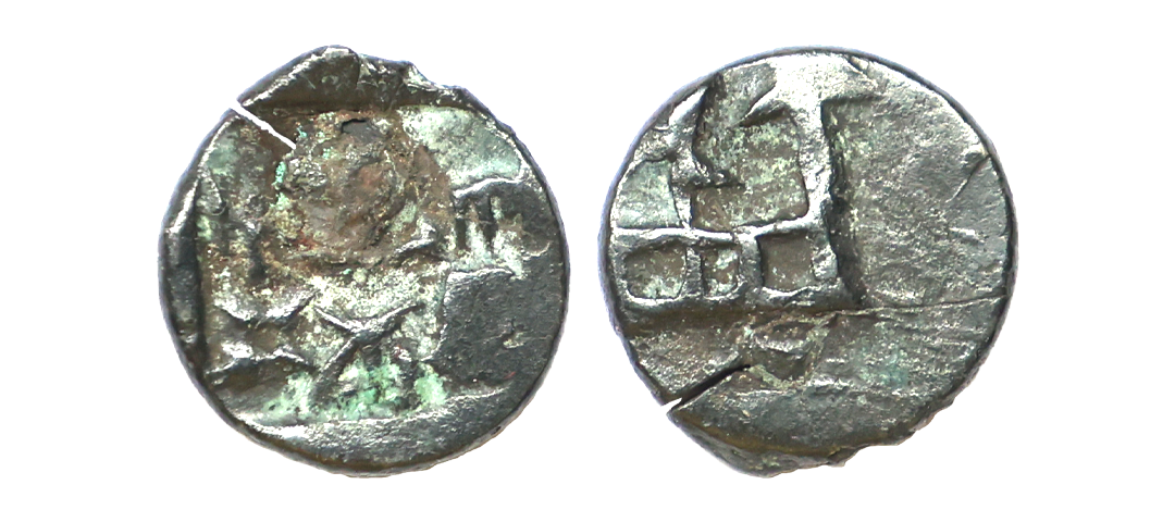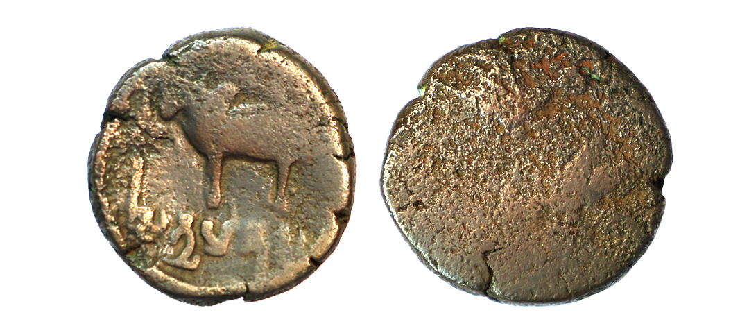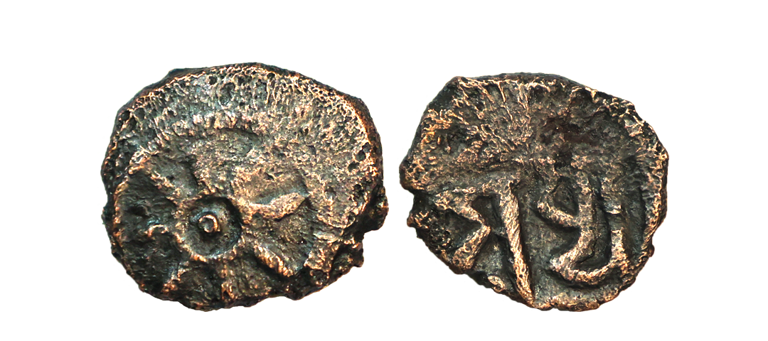 Ancient, Panchalas, Agnimitra (c. 1st Century AD), Copper Unit, 5.59 gms, Obv. Traces of Deity (Agni) with fiery hair, standing on a pedestal flanked by standards, Rev. A square incuse with row of Panchala symbols on top and Brahmi legend ‘Agimitrasa’ below, Pieper # 1356, about very fine, very