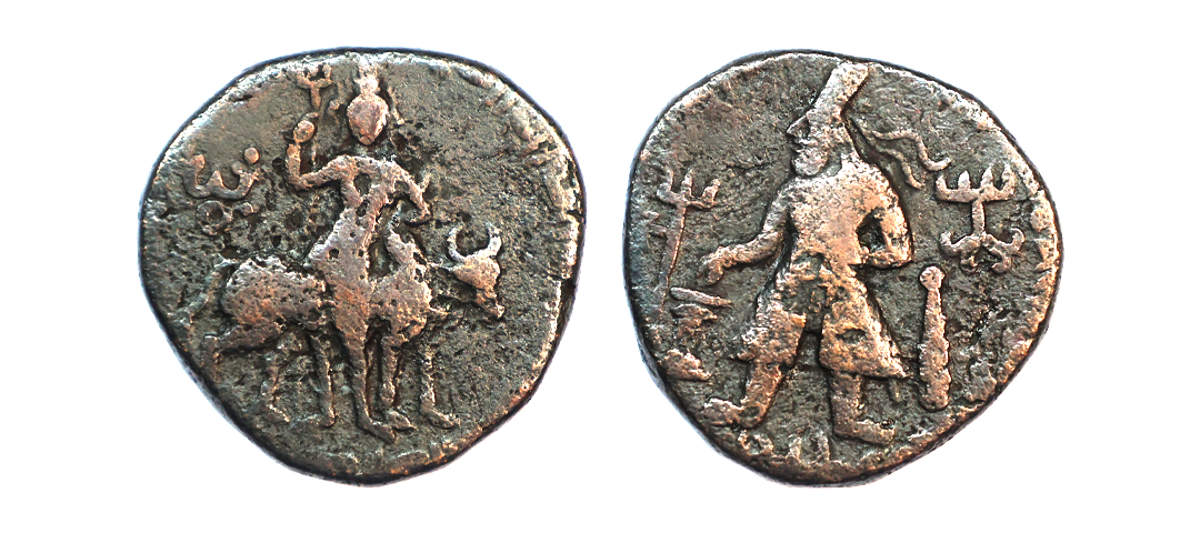 Ancient, Kushanas Dynasty, Soter Megas alias Vima Takto (c. 90th-113th AD), Copper Drachm, 6.98 gms, Obv. Bust of the Kushan ruler to right wielding a spear in front of his face and behind monogram, Rev. The King mounted on a horse to right with Kharoshti legend around and monogram front of horse, Mitch # ACW 2939, fine, scarce.