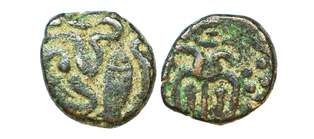 Hindu Medieval, Chandellas of Jajekabhukti, Trailokya Varman (c. 1203-1245 AD), Base Gold 1-1/8 Masha, 0.85 gms, Obv. Seated Goddess Lakshmi facing, Rev. Devanagari Legend in three lines reading ‘Shrimat-Tri/lokyaVa/mmaDeva’, very fine, very rare fraction.