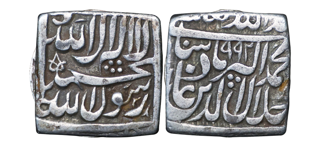 Mughal, Akbar (AH 963-1014, 1556-1605 AD), Silver ¼ Rupee, 2.88 gms, Dar-al-Sultanat Ahmedabad Mint, AH 993, very fine+, extremely rare.