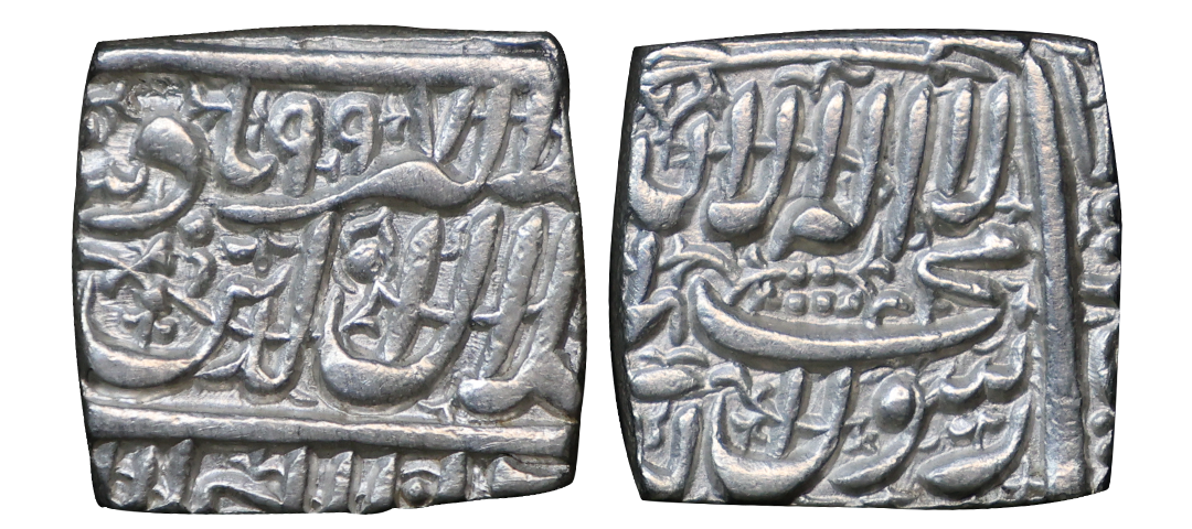 Mughal, Akbar (AH 963-1014, 1556-1605 AD), Silver ¼ Rupee, 2.88 gms, Dar-al-Sultanat Ahmedabad Mint, AH 993, very fine+, extremely rare.