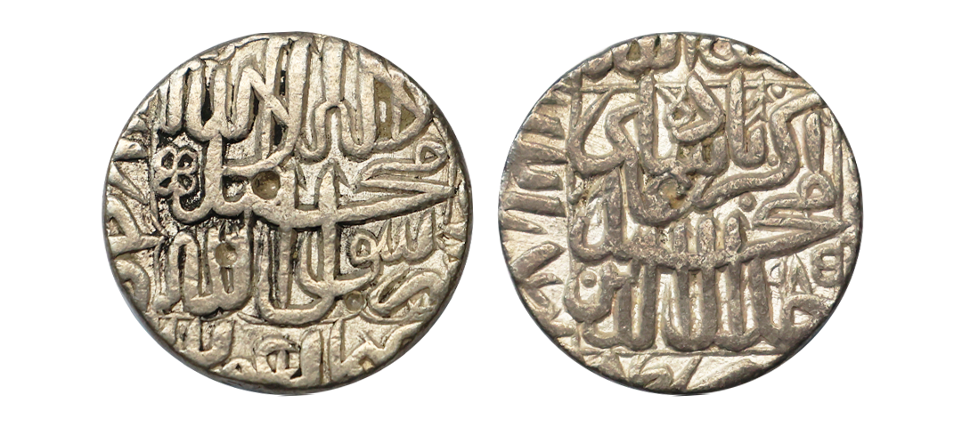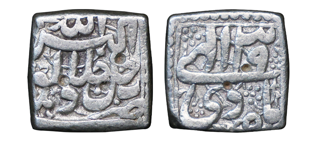 Mughal, Akbar, Silver Square Rupee, 11.10g, Dar-ul-Sultanate Ahmedabad Mint (Mint name out of flan), AH 992, Kalima type (KM 82.1). Very Fine.