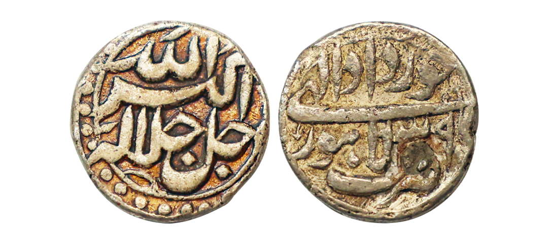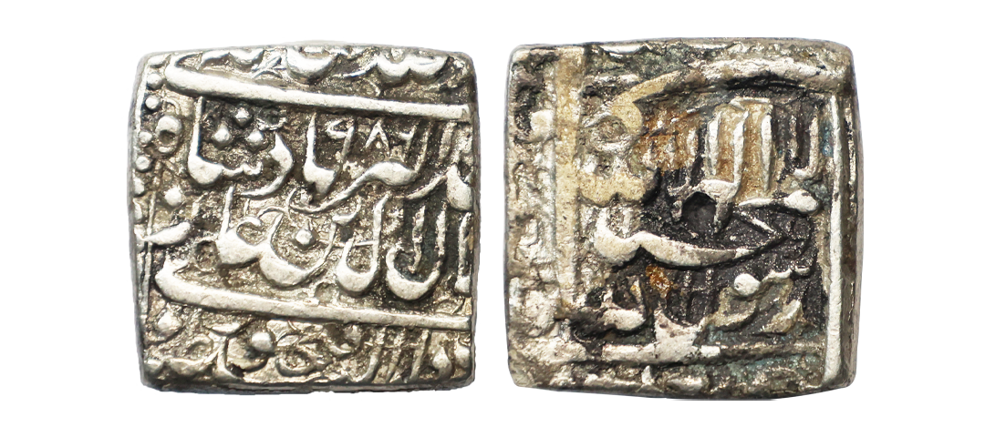 Mughal, Akbar, Silver Square Rupee, 11.33g, Delhi Mint, Ilahi type, Month Di, Year 39 (KM 88.2). Extremely Fine.
