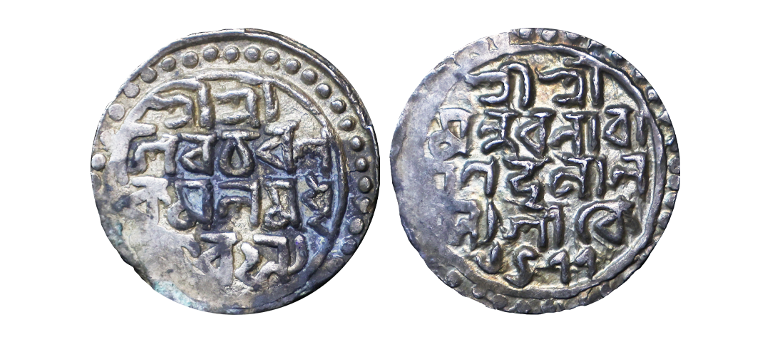 Assam, Gaurinath Simha (SE 1702-1718, 1780-1796 AD), Silver 1/32 Rupee,0.07g, RY 4, KM #190, very fine, very scarce.