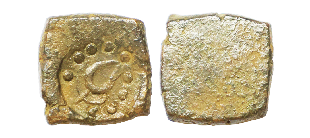 Gond Kingdom of Devagarh Branch, Anonymous Issue, Copper Paisa, 5.96 gms, Devagadh Branch, countermark of flower in dotted circle, uniface, KM # 3, very fine, very scarce.