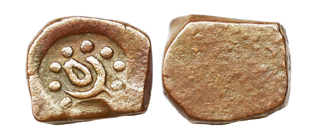 Gond Kingdom of Devagarh Branch, Anonymous Issue, Copper Paisa, 6.51 gms, Devagadh Branch, countermark of flower in dotted circle, uniface, KM # 3, very fine, very scarce.