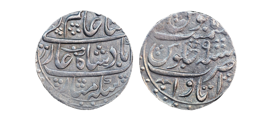 Rohilkhand, Inayat Khan (AH 1176-1184, 1762-1771 AD), INO Shah Alam II (AH 1174-1221, 1759-1806 AD), Silver Rupee, 11.03 gms, Itawa Mint, RY 9, sword on obverse, KM #66, very fine, very scarce.