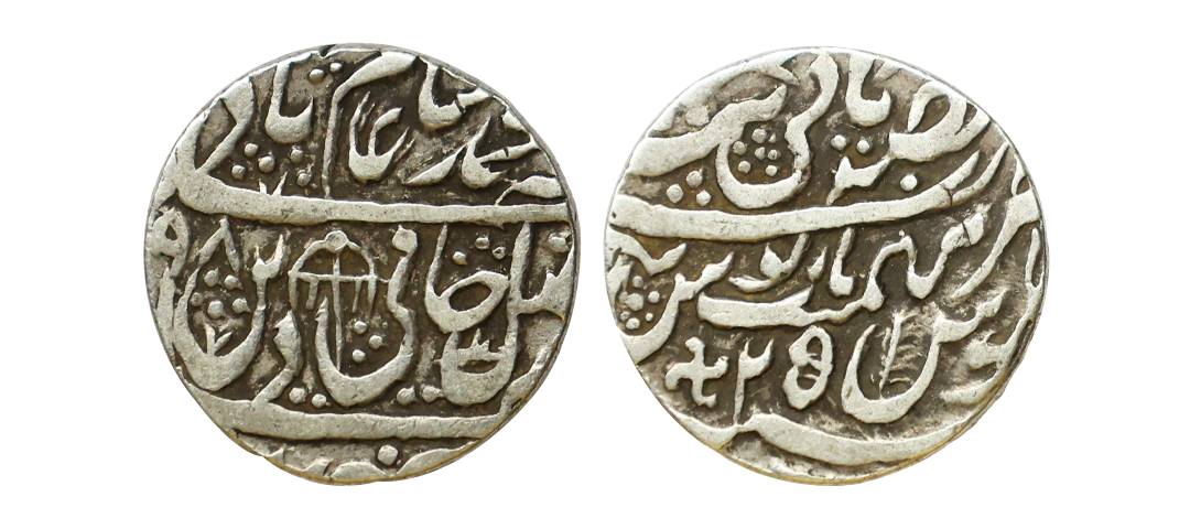 Rohilkhand, Faizullah Khan (AH 1167-1208, 1754-1794 AD), INO Shah Alam II (AH 1174-1221, 1759-1806 AD), Silver Rupee, 10.99 gms, Qasbah Panipat, AH 1198, RY 25, umbrella as a mint mark on obverse & Swastik on reverse, similar to KM # 116, very fine+, very scarce.