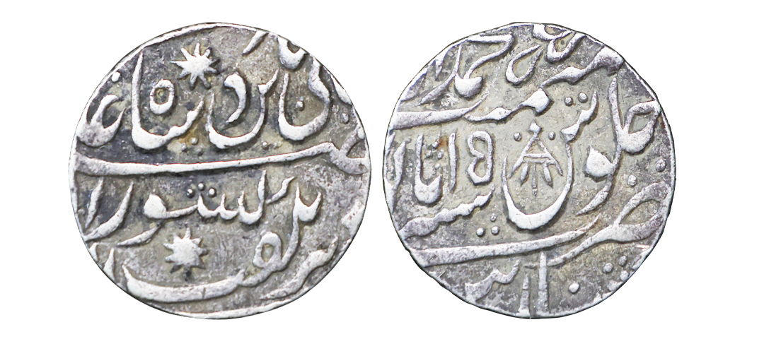 Awadh State, Shuja ud-Daula (AH 1167-1188, 1754-1775 AD), INO Shah Alam II (AH 1174-1221, 1759-1806 AD), Silver Rupee, 11.28 gms, Muhammadabad Banaras Mint, AH 1169, RY 3, KM # 36.2, Kapoor & Master #3.19, very fine, scarce.