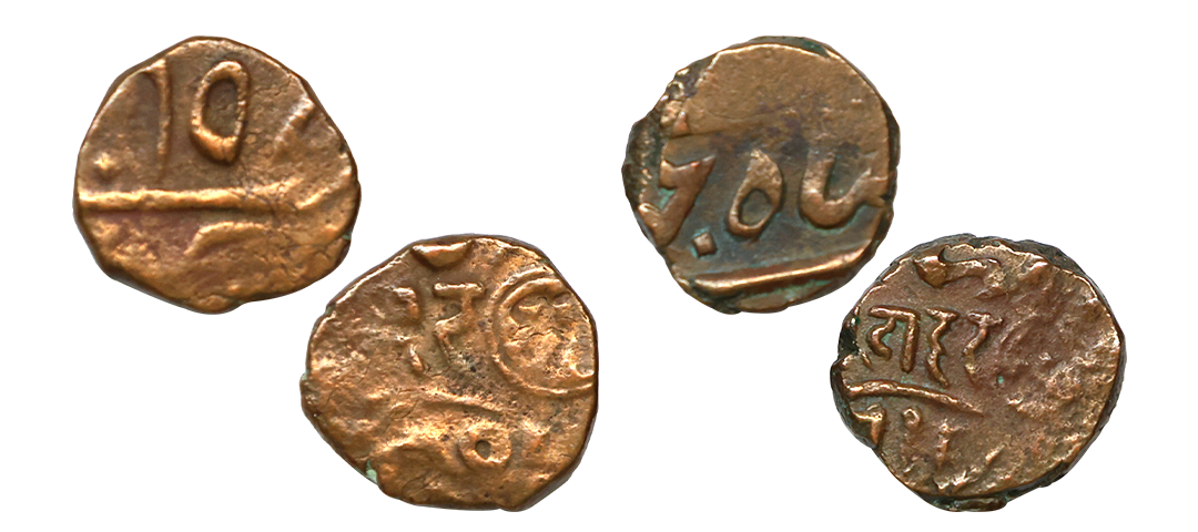 Bhaunagar State, Copper ½ Trambiyo, 3.75 gms & 5.83 gms, INO of Shah Jahan III, about very fine, rare.
