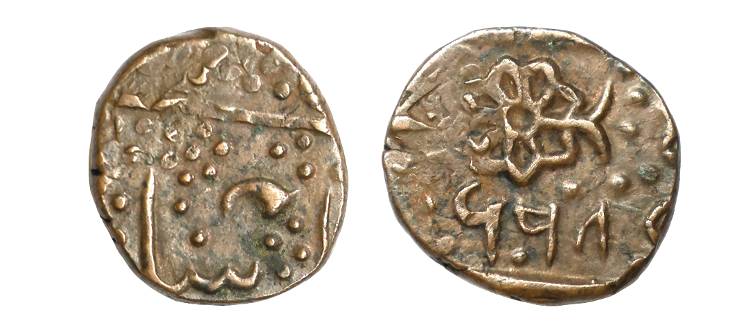 Lunavada State, Wakhat Singh (VS 1924-1986, 1867-1929 AD), Copper Paisa, 7.08 gms, Lion type, Obv. Lion to left sword below with partial date, Rev. Gujarati legends in three lines, KM #10, about very fine, very scarce.