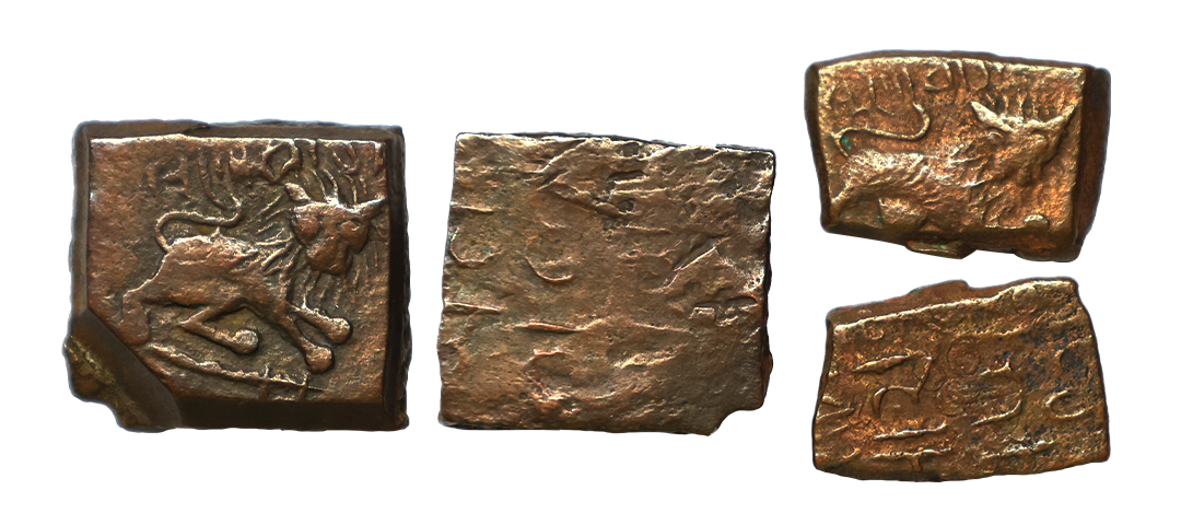 Lunavada State, Wakhat Singh (VS 1924-1986, 1867-1929 AD), Copper Paisa, 7.28 gms, Lion type overstruck on palm in square type paisa, fine, rare.