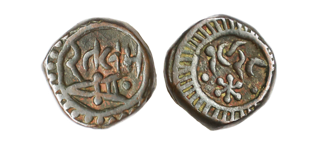Ratlam State, Anonymous Issue, Copper Paisa, 10.22 gms, Obv. battle axe with ankushi, Rev. 'Raej' in dotted circle with partial date below xx44, very fine+, very scarce.